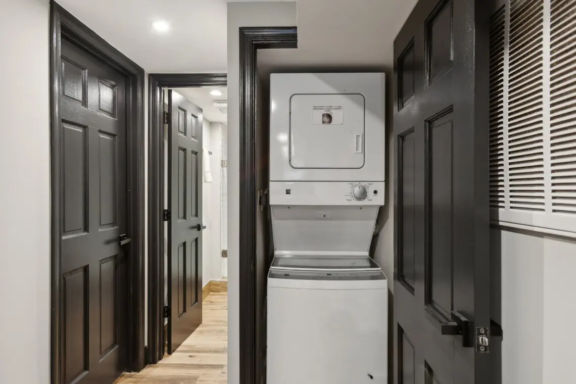 The bathroom, radiating subtle elegance, offering essentials like shampoo, conditioner, along with a first aid kit for any minor emergencies. Stay fresh with our in-unit washer and dryer, available at your disposal.