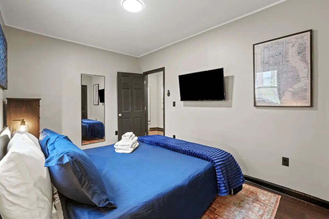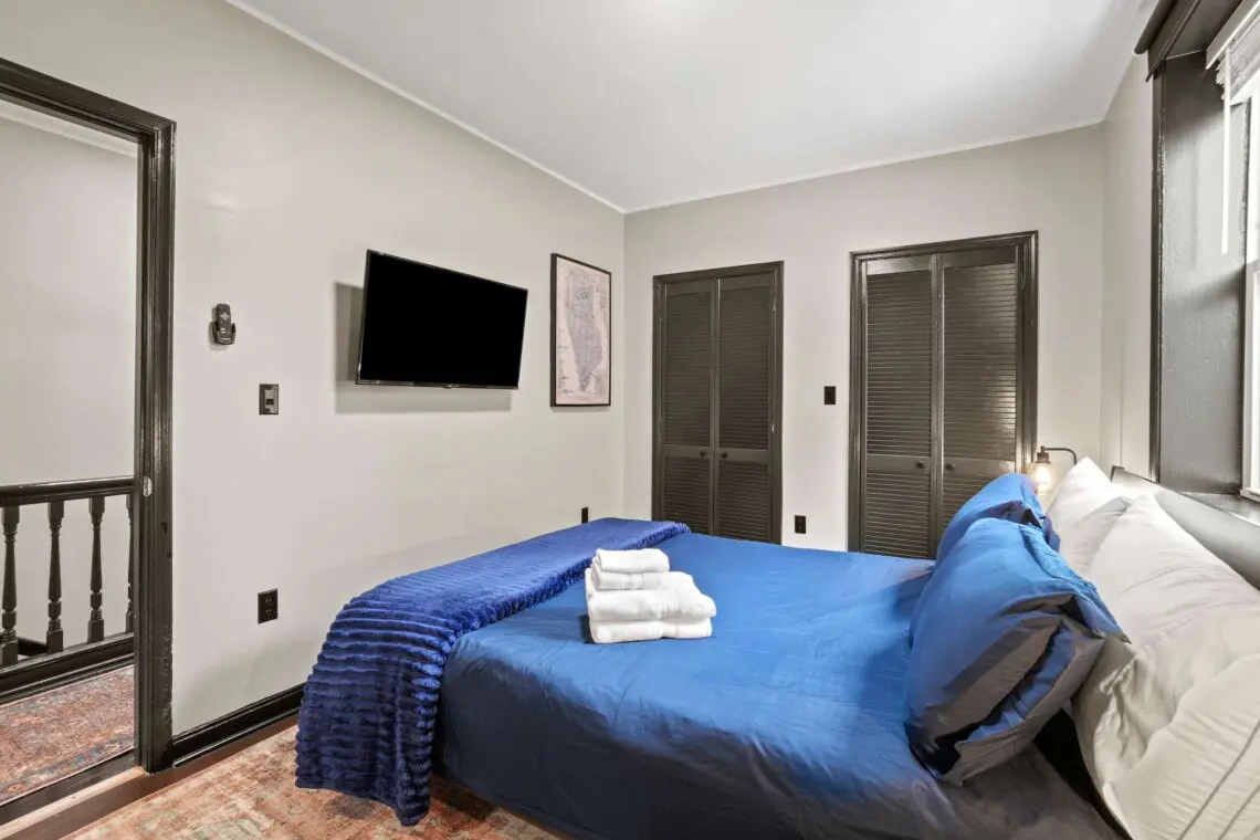 Our elegant12-bedroom abode brims with subtle historic charm, offering differentiated spaces reflecting their own character with room-darkening shades ensuring peace. Each room houses a plush queen-sized bed that promises a restful night’s sleep after a day of DC exploration. Ample storage and necessities like an iron, hangers, and a hairdryer are available, ensuring all your needs are met.