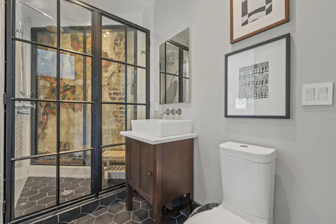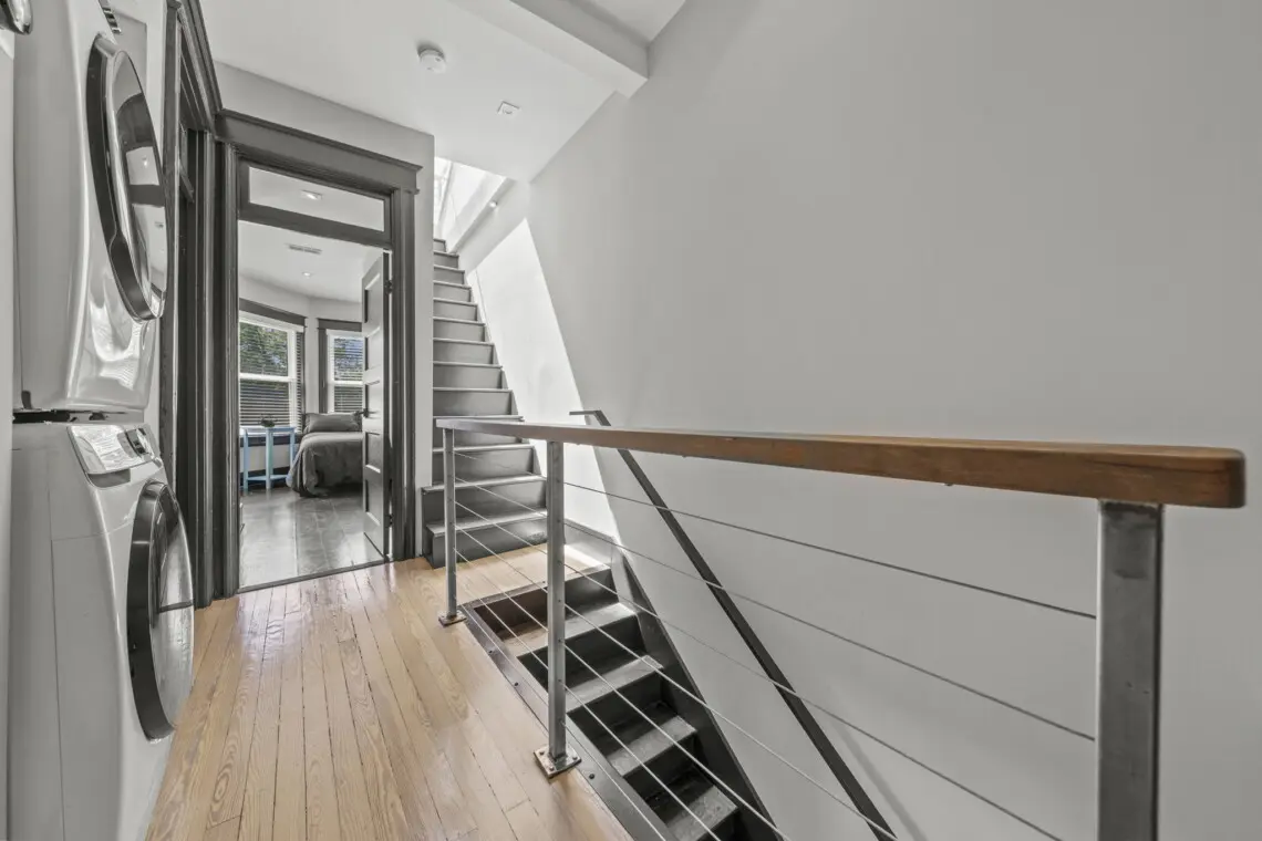 The crown jewel is the rooftop deck: a sweeping panoramic view of the DC skyline that’s stunning day or night, and unforgettable at sunset. A private balcony and backyard round out the outdoor spaces. In-unit washer/dryer, central AC, and smart lock self-check-in make the logistics effortless.