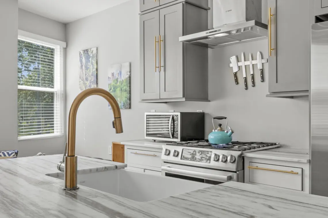 Every bedroom is outfitted with memory foam mattresses and premium linens. The bathrooms offer spa-like finishes to help you unwind after a day on the Mall. The open living areas flow naturally from a fully equipped kitchen — dishwasher, oven, stove, coffee maker, and everything you need — to a stylish living room with Smart TVs and ultra-fast Verizon FIOS.