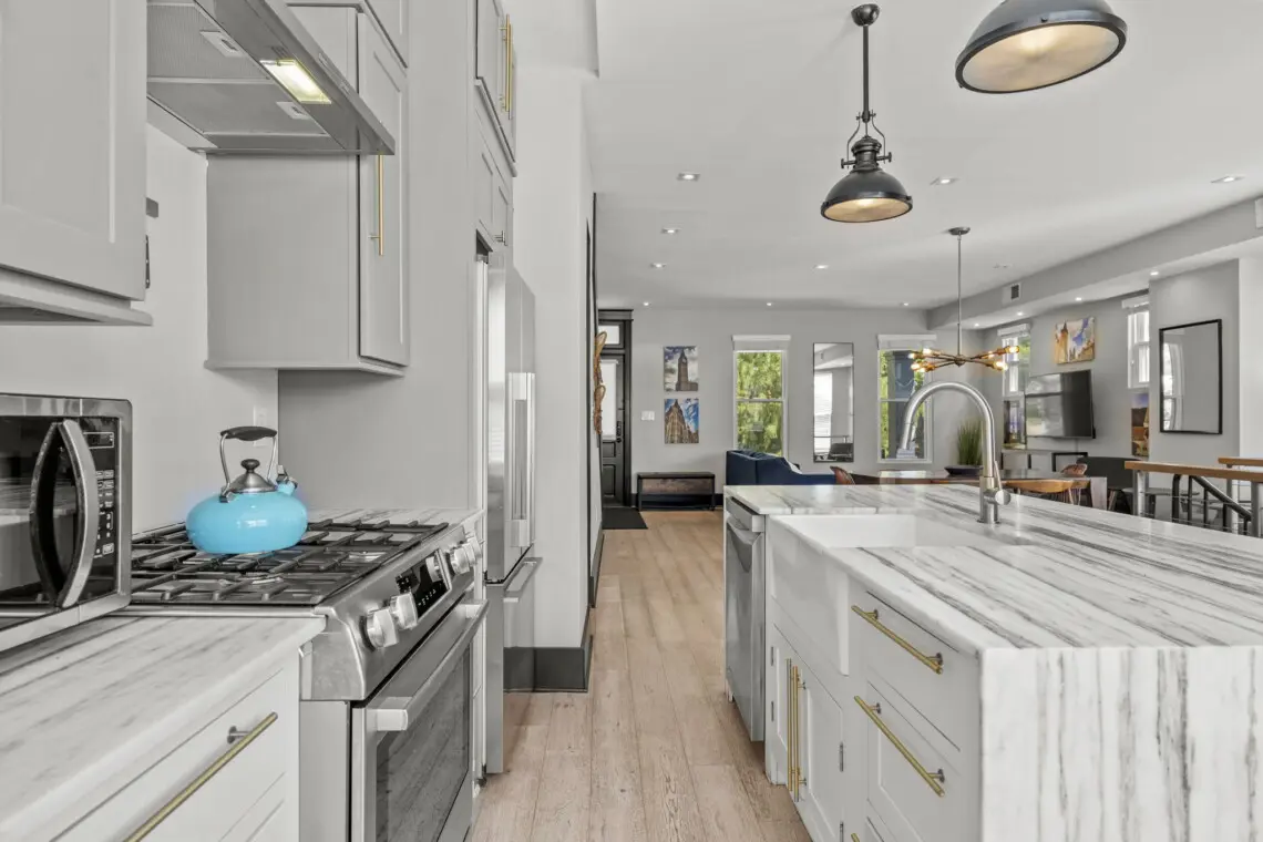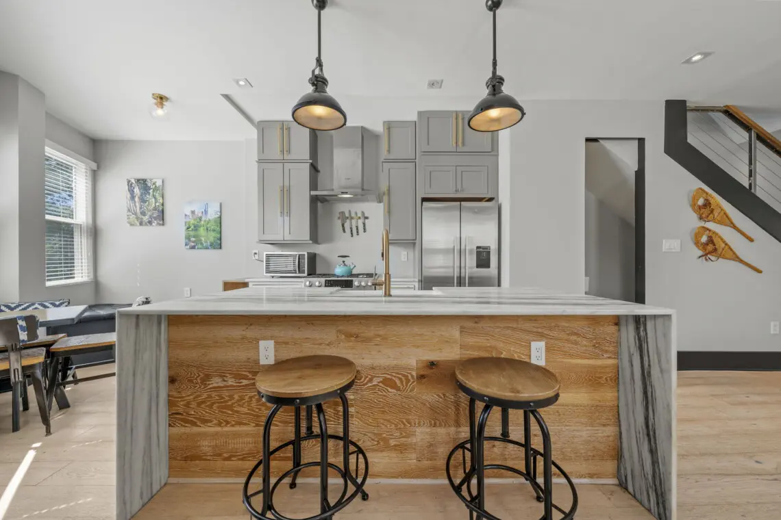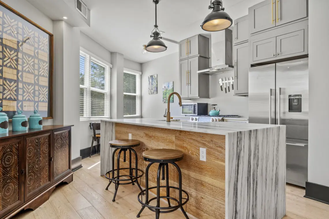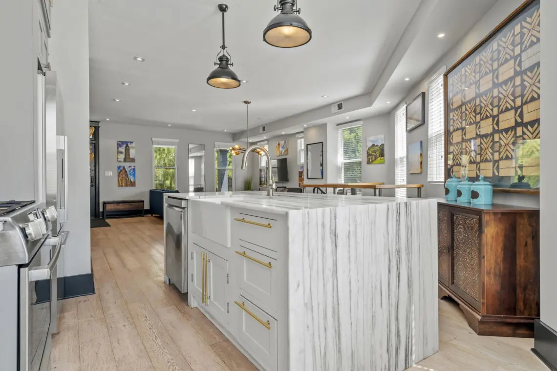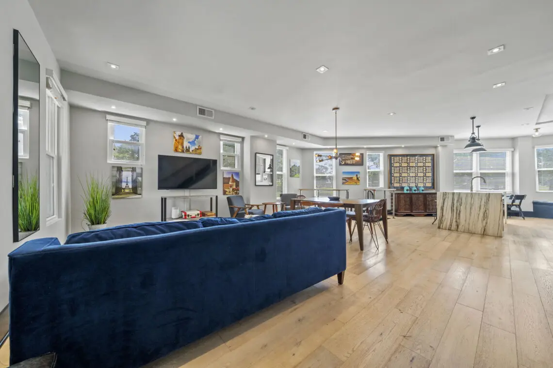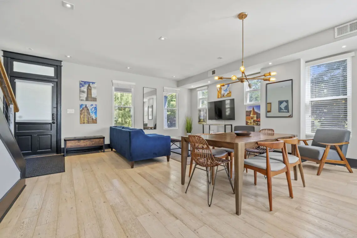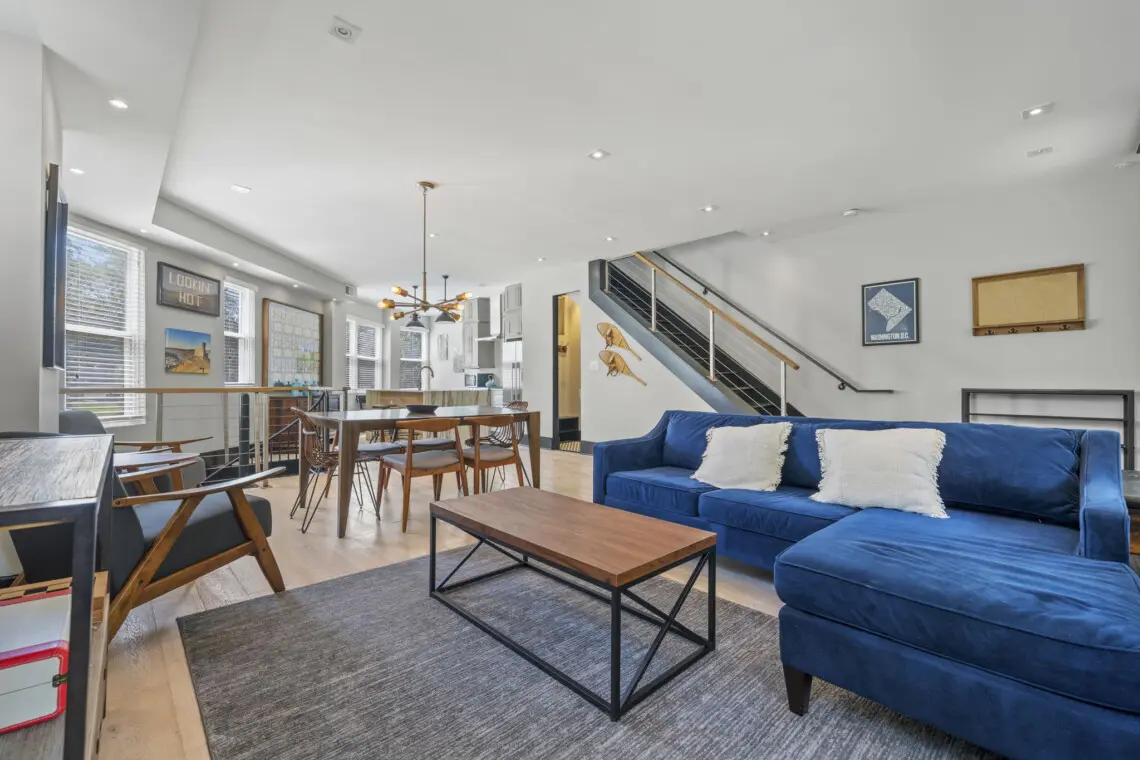Step inside a thoughtfully restored DC rowhouse where century-old charm meets modern luxury. Spread across four floors, the home features five well-appointed bedrooms — four with queen beds and one with two queens — plus a sofa bed in the living room, comfortably sleeping up to 14 guests.